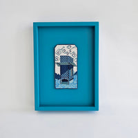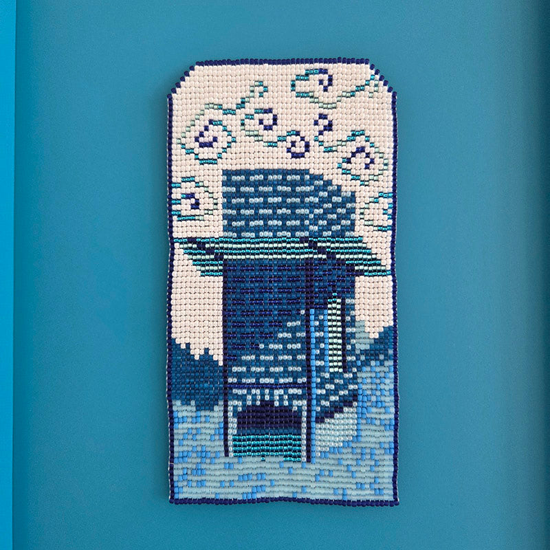 Hand loomed glass beads, bead thread, framed;