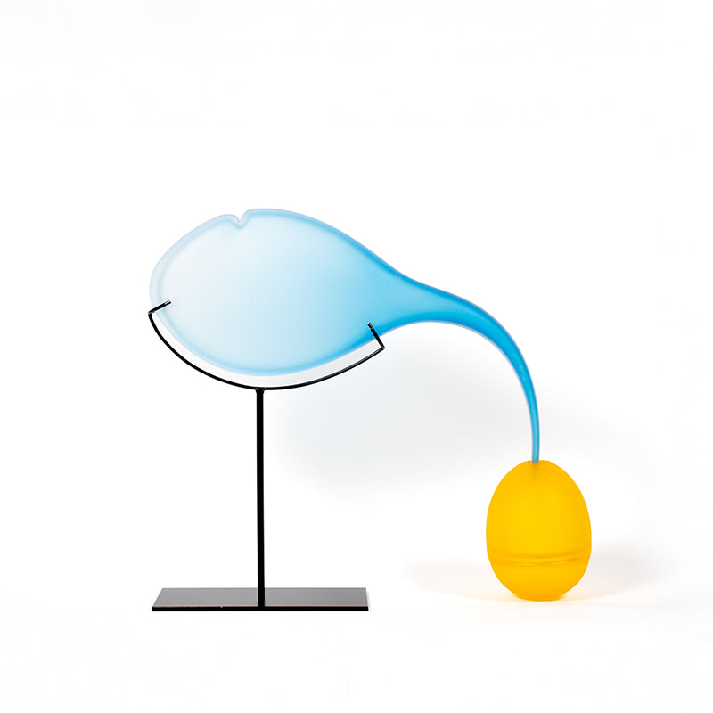 blown and hot-worked Aquamarine, Saffron yellow glass, acid-etchedH455 x W475 x D115mm