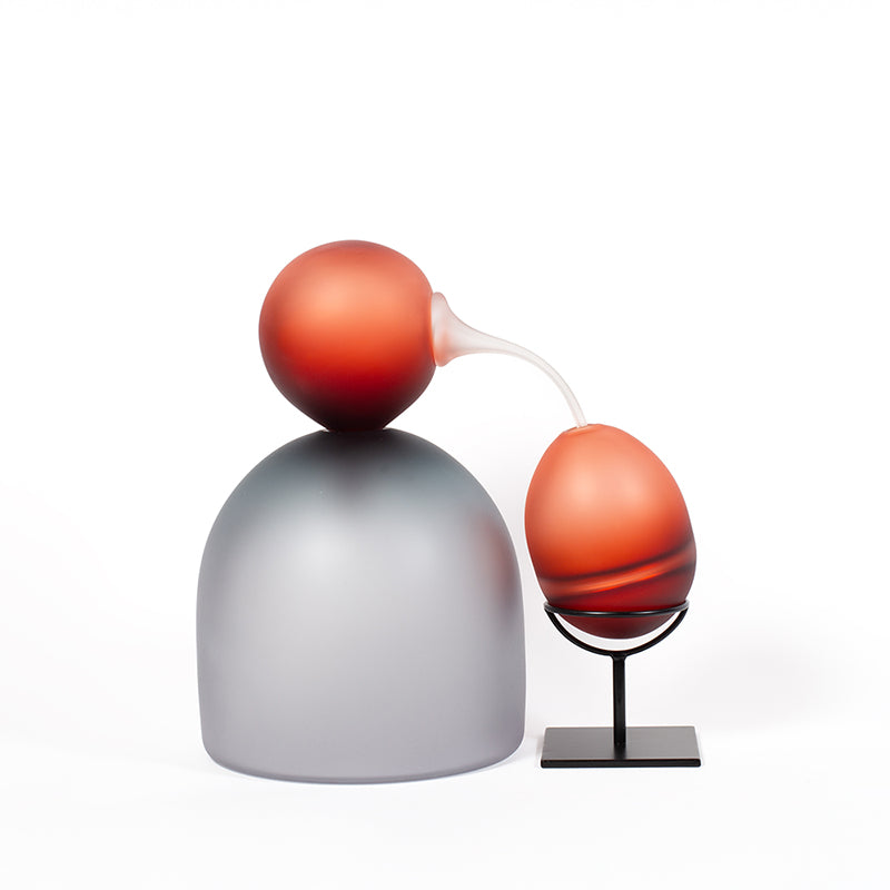 blown and hot-worked grey, and red lustre glass, acid-etchedH340 x W335 x D220mm