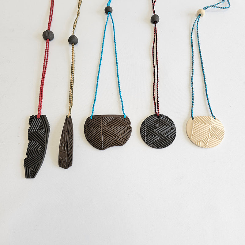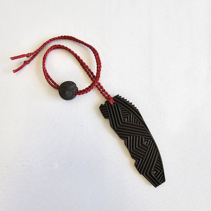 imprinted black uku, plaited cord