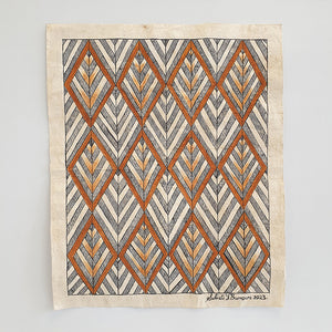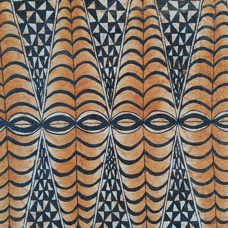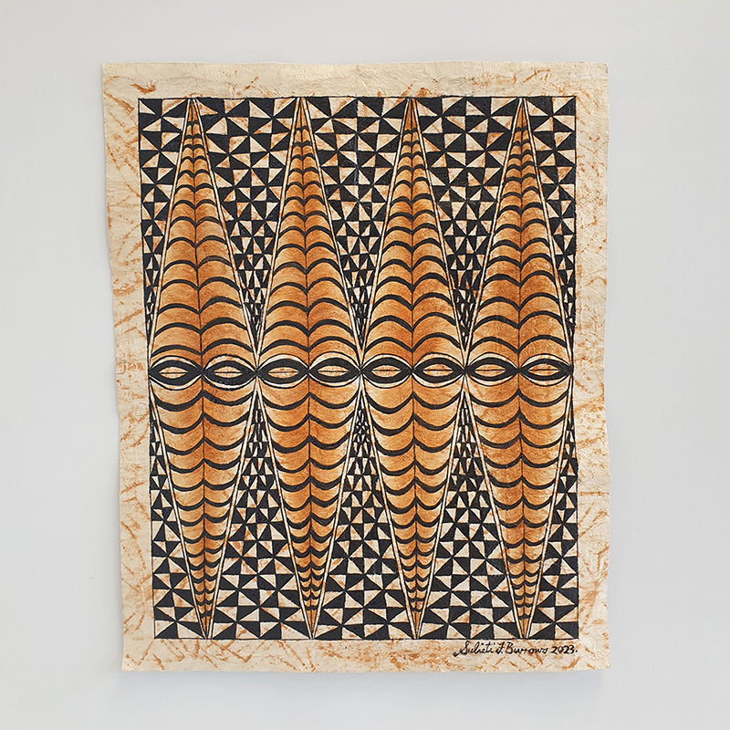 Sulieti Fieme'a Burrows ONZM is a Tongan New Zealand that makes tapa cloth. Sharing this knowledge with her daughter, Tui Emma Gillies, who she often collaborates with, they are regarded as scholars of the art. Their shared passion and close relationship is evident in their collaborative work, with a hybrid style harmonizing traditional tapa with contemporary elements. Burrows grew up in Tonga and learnt all her making skills from her mother and other people in her village. Burrows is an important knowledge holder in her community and the wider global community. Burrows work revisits traditional often, ancient designs that are customarily black and brown, and dealing with themes from the standard of geometric grids and floral motifs, that communicate customary practices and traditions of life in Tonga. Burrows strives to utilize as many natural resources as possible in tandem with modern materials. Tapa cloth itself is entirely decomposable, and the glue used to paste each piece together is mixed with tapioca starch, half-cooked until the texture’s right. The main modern adaptations in creating tapa art include Indian ink.