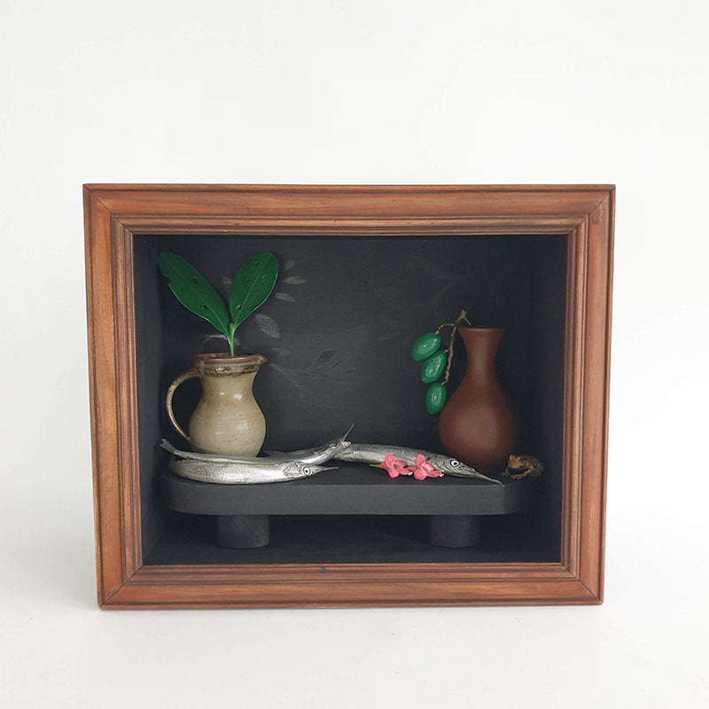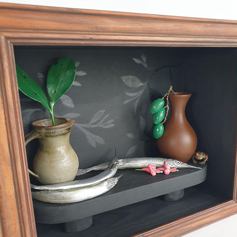 Still Life with Piper fish, Archery's frog, Puriri flowers and Karaka berries, 2022