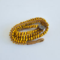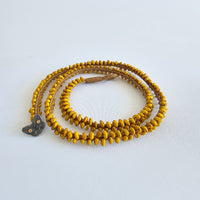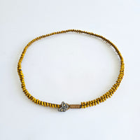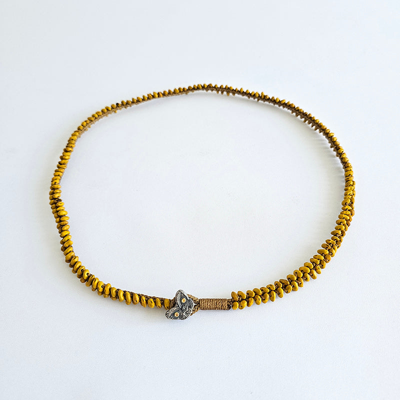 Kakano kowhai, oxidised sterling, 24 karat gold, polyester cord.
