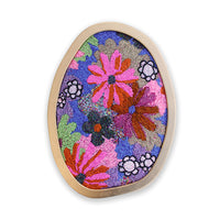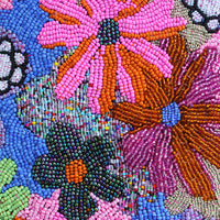 Glass beads, cotton on found fabric, gold leaf frame, 350 x 255mmFrom the solo exhibition 'She drew the flower that started the power' 16 August - 6 September 2025