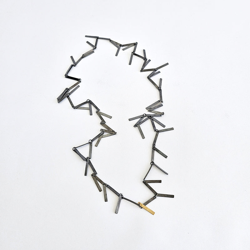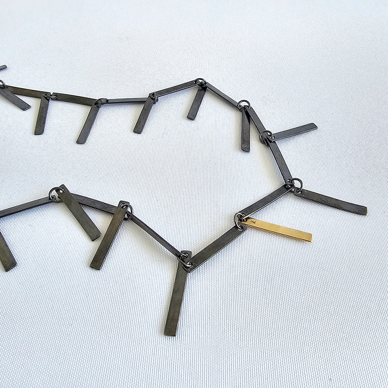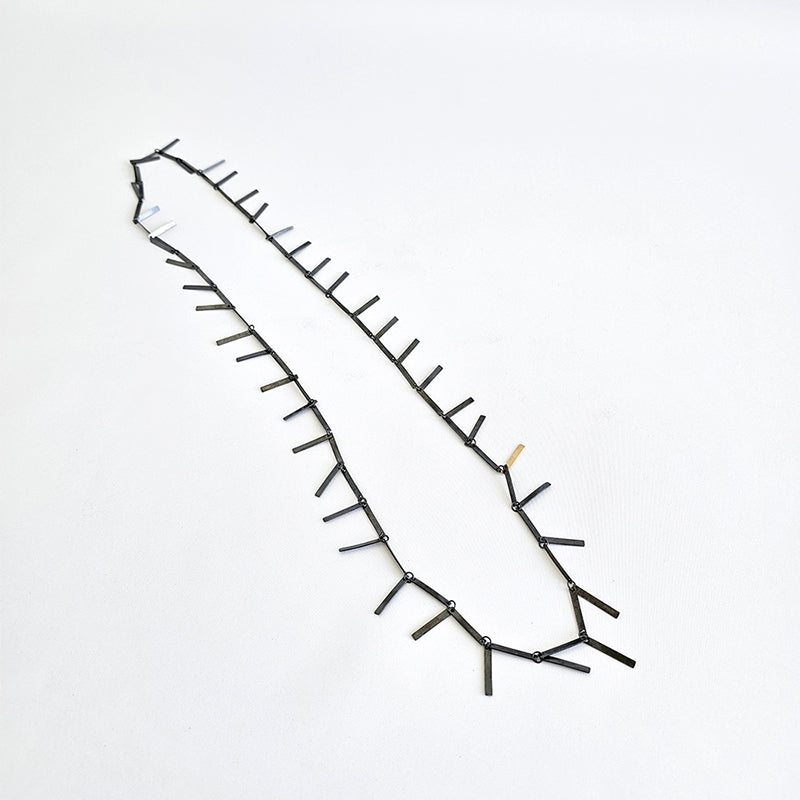 Sterling silver, polyester cord, 67 x 10mm, cord L46.5cm.